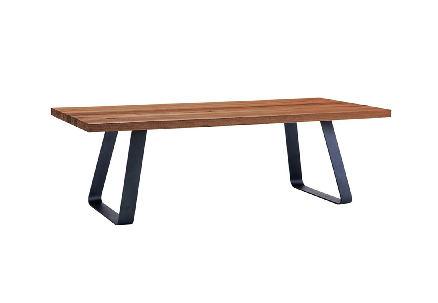 The Runner table features a solid turkey oak top: this is a wood derived from oak that has knots, veins and splits from which a warm, lively impression of nature springs forth. The structure of the Runner table, shaped by essential and defined lines, perfectly fits the canons of industrial style.