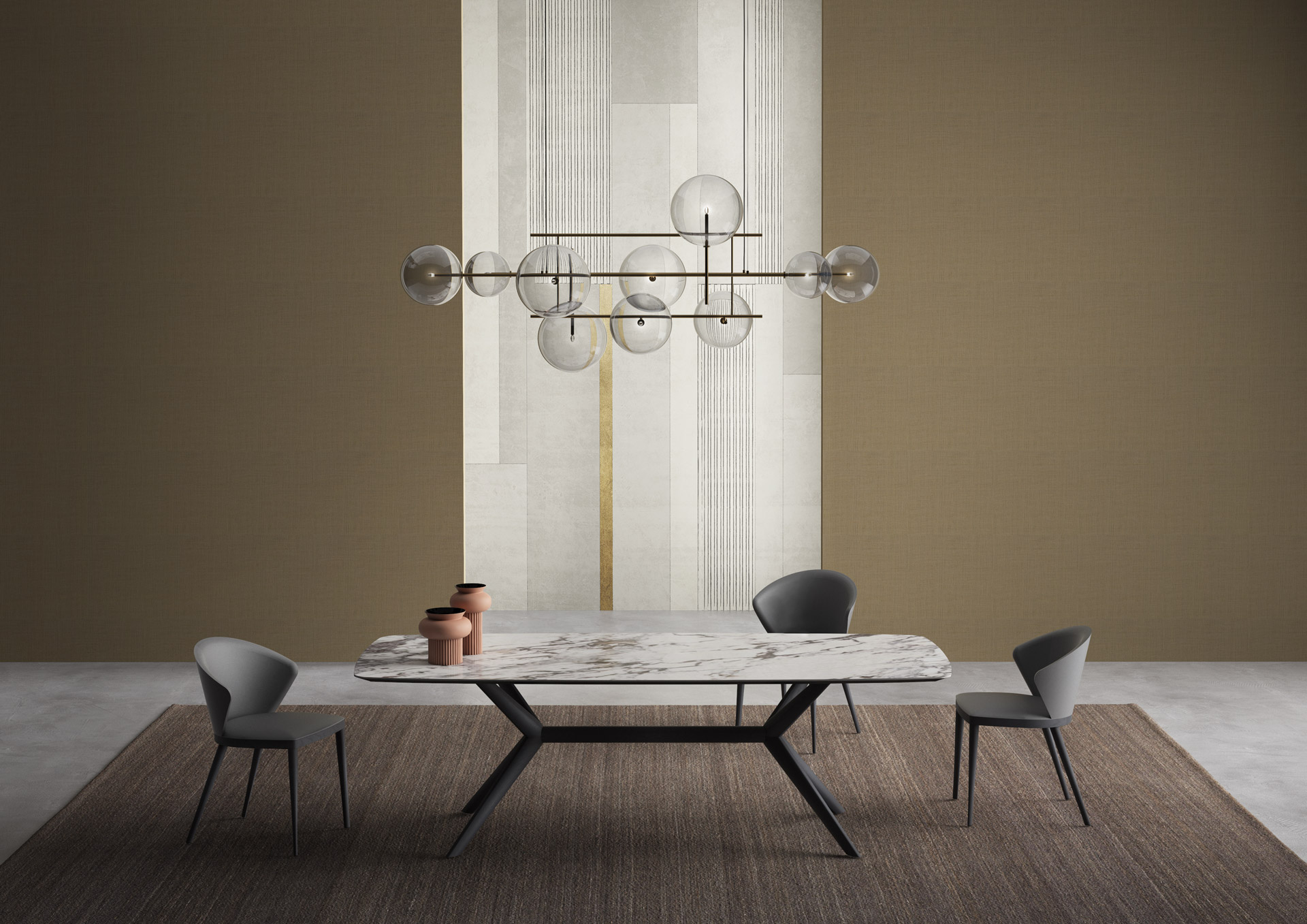 Il tavolo Troncadero è caratterizzato da linee che richiamano un'assoluta eleganza: le sfumature della ceramica vanno in contrasto con la giocosità della struttura della gamba, creando un tavolo dal design unico.